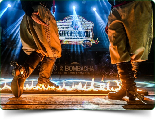 Durante o jantar a tradição gaúcha é interpretada ao som de músicas típicas executadas ao vivo e um contagiante show folclórico e ritmos latino-americanos.